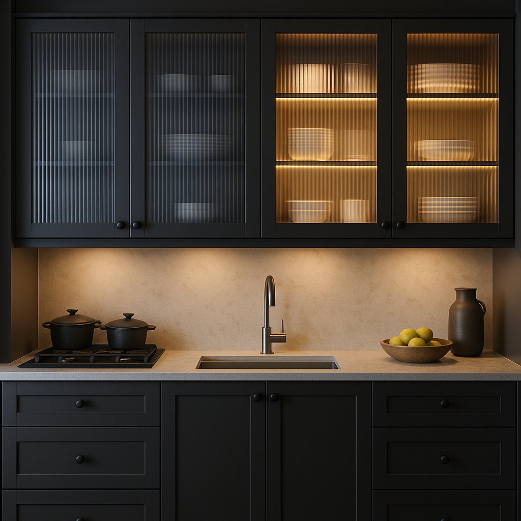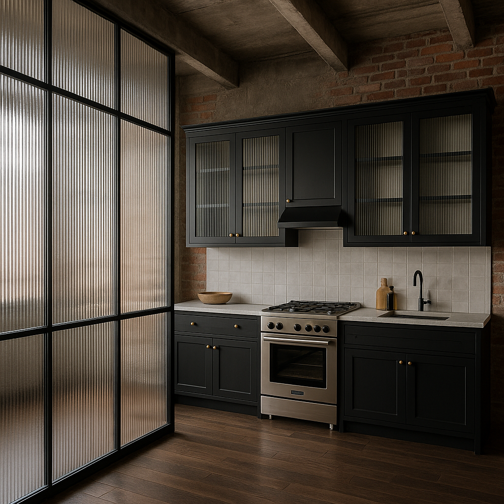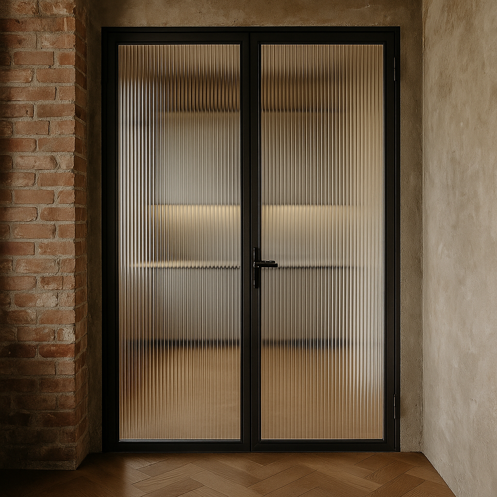 materiał: szkło ornamentowe flutes bezbarwny, szkło ryflowane, szkło w paski, szkło żebrowane, szkło karbowane
