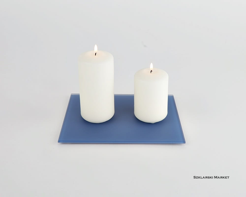 Podstawka szklana pod świece niebieska ciemna matowa prostokątna