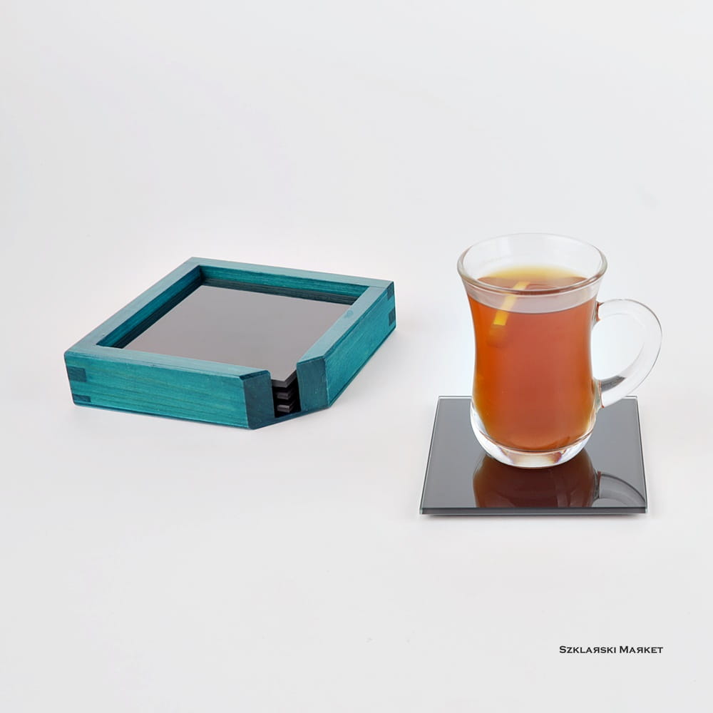 Podkładki pod kubek węglowe w pudełku turkus błękitny