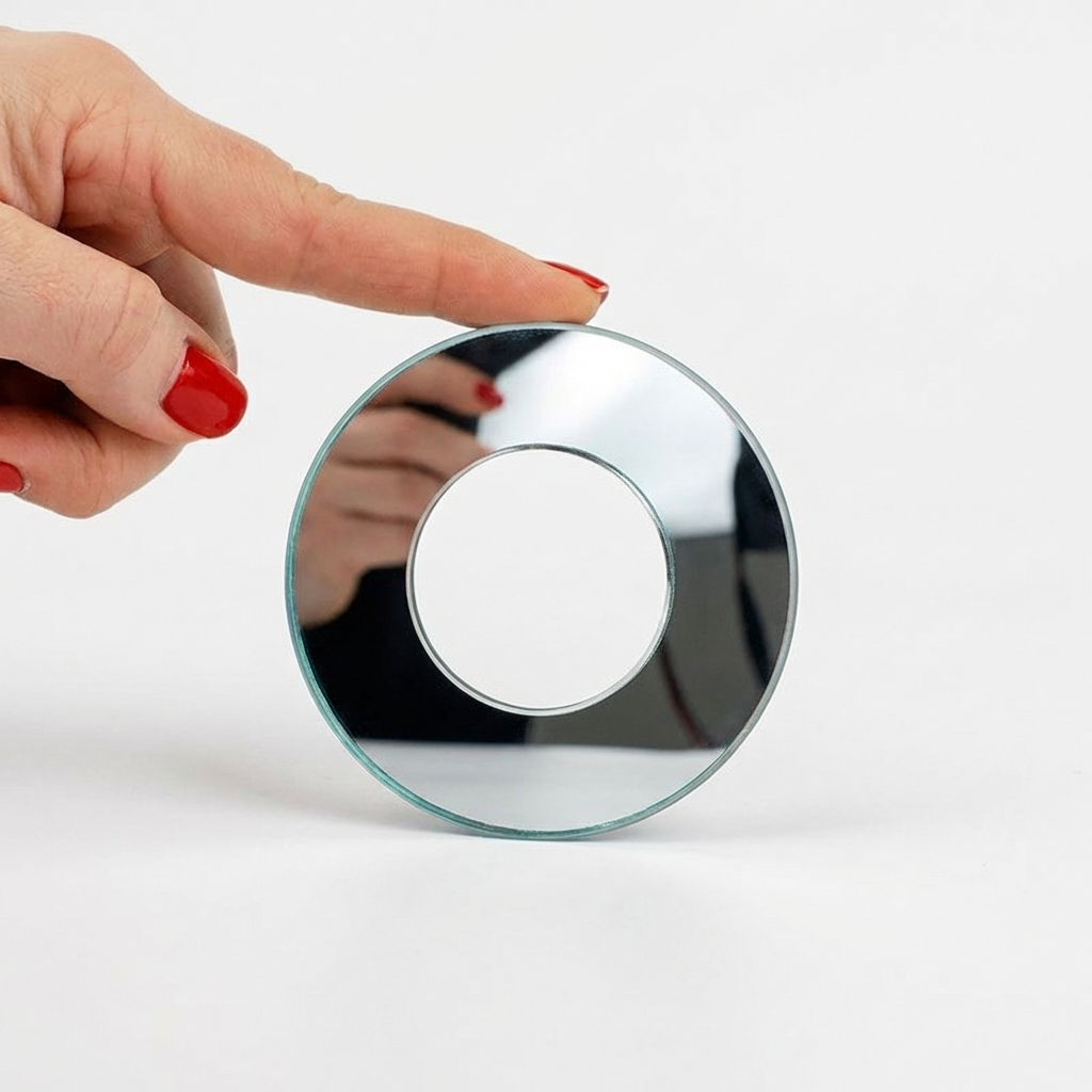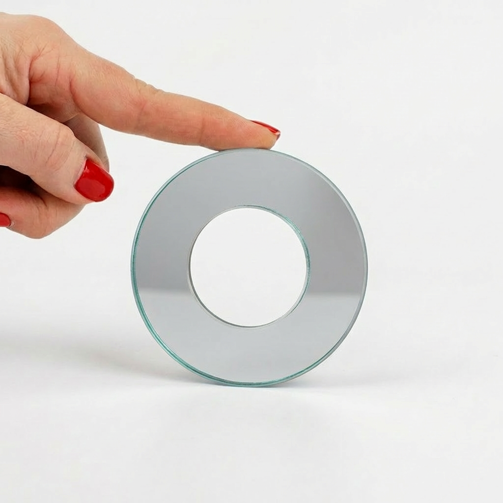 Rozeta szklana lustro srebrne fi 85 mm z otworem fi 42 mm